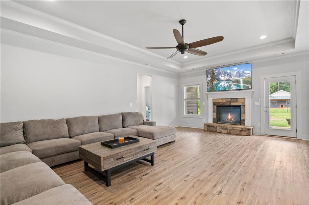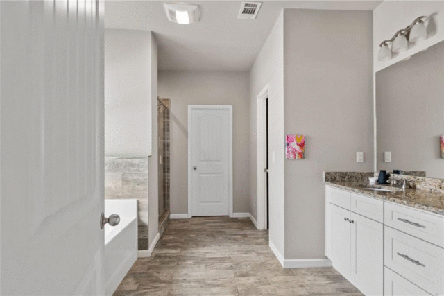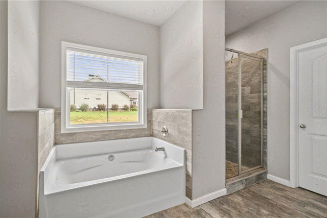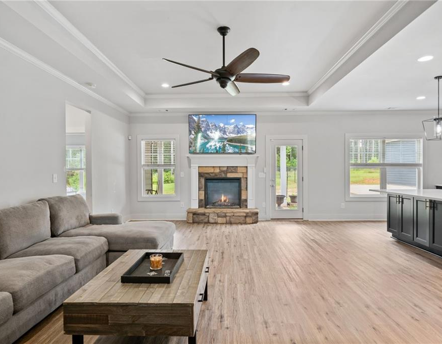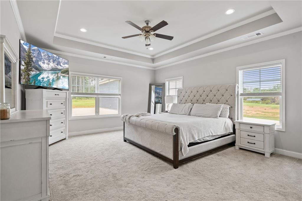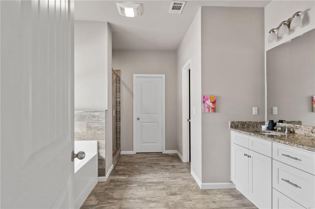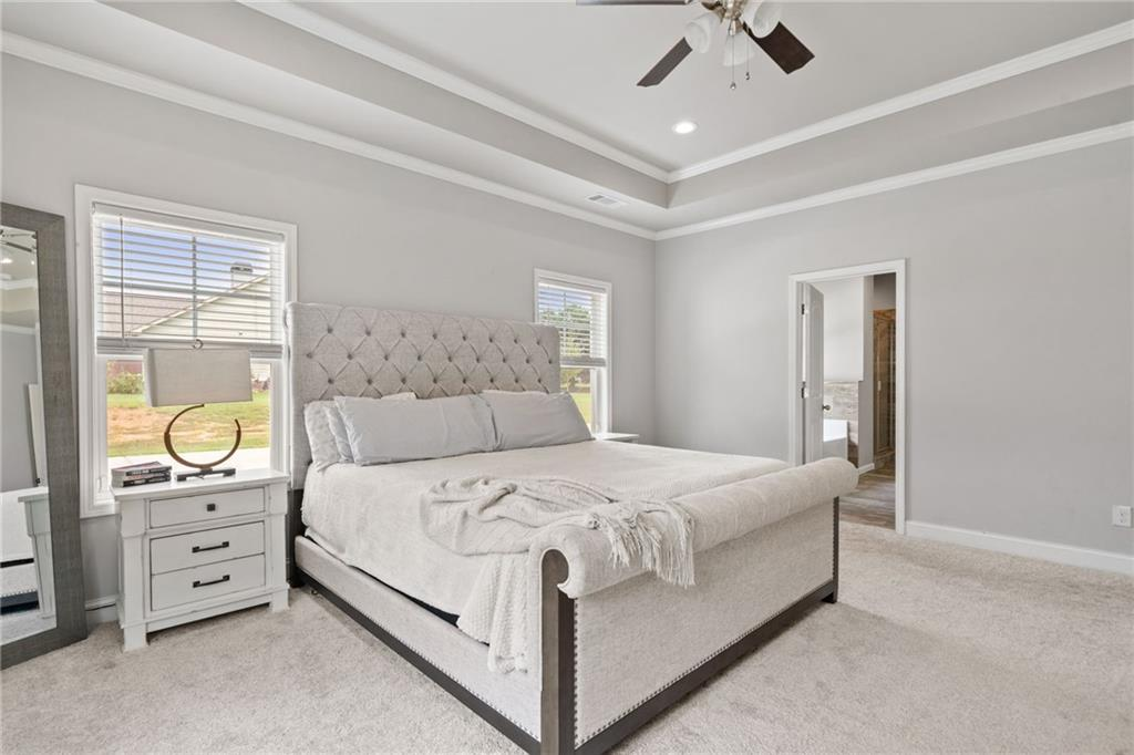 The Owner’s Suite w/Double Tray Ceiling is a RETREAT in itself. SPA INSPIRED En Suite Flaunts Floor to Ceiling TILED Shower, Soaking Tub, and Oversized Walk-In Closet. The Split-Bedroom layout is IDEAL for Multi-Generational Living.
