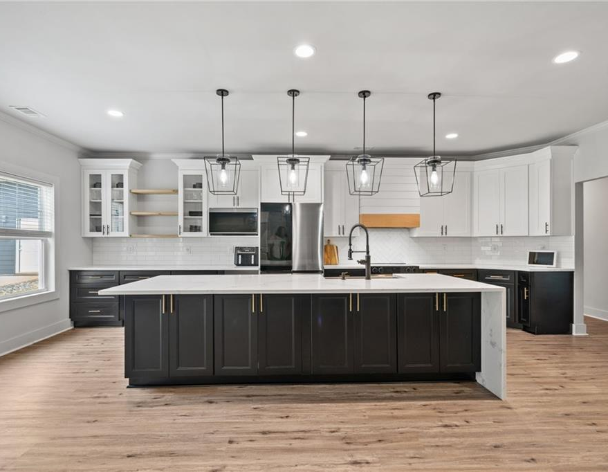 You are Welcomed by Soaring Ceilings, Custom Lighting throughout, Brand NEW LVP Flooring, and an OPEN and INVITING Floorplan that FLOWS Seamlessly. NEW CARPET, NEW (Interior & Exterior) PAINT, 6″ Upgraded Baseboards , NEW WINDOWS & Hardwired LANDSCAPE LIGHTS Leave You WANTING FOR NOTHING~~The DESIGNER CHEF’S KITCHEN is truly the DIVINE STATEMENT that you’ve ALWAYS Dreamed of Having in a Home.